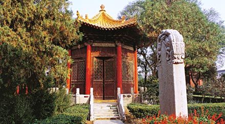 清代建筑亭中的碑刻是清代平定西北戰亂內容的記功碑。