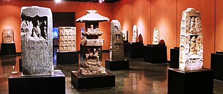 石刻藝術是造型藝術中的一個重要門類在中國有著悠久的歷史。石刻屬于雕塑藝術是運用雕刻的技法在石質材料上創造出具有實在體積的各類藝術品。中國古代石刻種類繁多古代藝術家和匠師們廣泛地運用圓雕、浮雕、透雕減地平雕、線刻等各種技法創造出眾多風格各異、生動多姿的石刻藝術品。 陜西有著光輝燦爛的古代文明歷史上有十多個朝代在此建都遺留有豐富的文化遺產石刻文物為其中重要組成部分。陜西古代石刻種類齊全時代序列較完整特別是漢唐石刻氣勢雄渾生動精美在中國古代雕塑史上占有獨特的地位。本館收藏的石刻藝術品從題材和功能上大致可分為陵墓石刻、宗教石刻、其他石刻三類。 (一) 陵墓石刻 中國古代自商周起逐漸形成了一套等級分明的陵寢制度陵墓石刻就是隨著陵寢制度和喪葬習俗的發展而成為其重要組成部分的。陵墓石刻大致分為兩類地下和地上石刻。地下石刻為墓室內實用性和裝飾性石刻如漢代的畫像石即作為墓室構件嵌置于墓門及四壁上面刻有內容豐富的各種圖畫。還有石棺、石槨等葬具除了本身具有藝術性的造型外還刻有各種圖案裝飾。這些畫像石及各種刻飾多采用減地平雕及線刻的手法鐫刻精美有著鮮明的時代特色及裝飾效果。 地上石刻主要是陵園、墓葬前的儀衛性和紀念性石刻。儀衛性石刻是在陵墓前神道兩側按一定的規制置放的石人、石獸等起著保衛及儀仗作用紀念性石刻則是為了紀念某個事件而專門雕刻的如唐太宗昭陵墓前雕刻的“昭陵六駿”等。這些石刻體量碩大造型生動威嚴肅穆。 (二) 宗教石刻 宗教石刻是指石窟寺、寺廟及民間供養的各種宗教造像及與之相關的雕刻以佛教石刻為主佛教自漢代傳入中國后其傳播形式除了經典文字外“以像設教”的藝術形式更易于被人們接受、膜拜南北朝以降造像之風盛行。本館收藏有大量北魏至隋唐的佛教造像及道教造像其中北朝時期的多為造像及造像碑以開龕造像、浮雕為主:隋唐的寺廟造像多為單體圓雕。這些造像種類較多雕刻精美時代特色鮮明反映了佛教造像由外來形式向中國風格的演變過程。 (三) 其他石刻 中國古代石刻除上述陵墓石刻和宗教石刻外還有很多實用性石刻。如宮殿、門闕、牌坊橋梁寺廟等各種建筑構件及一些實用性石刻如石燈石函、石鎮、碑首、栓馬樁等這些石刻上也多有精美的雕刻。古代匠師們充分發揮聰明才智將實用性和藝術性巧妙地結合起來其中不乏石刻藝術中的珍品。