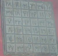 這塊鐵板幻方是1957年在元代安西王府遺址發(fā)現(xiàn)的上面鑄有36個(gè)阿拉伯?dāng)?shù)字。這36個(gè)數(shù)字排列 成方陣橫、豎、對(duì)角的6個(gè)數(shù)字相加之和都是111。這在古代被認(rèn)為是奇妙莫測(cè)所以稱作幻方幻方被鄭重地藏在石函里壓在房基下作為避邪、防災(zāi)的物品。這個(gè)幻方是我國(guó)數(shù)學(xué)上應(yīng)用阿拉伯?dāng)?shù)字最早的實(shí)物資料。