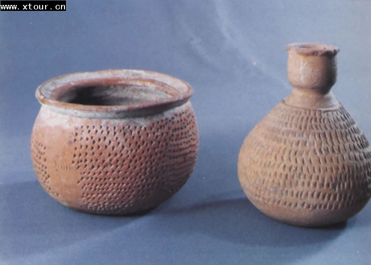 剔刺紋罐、指甲紋壺