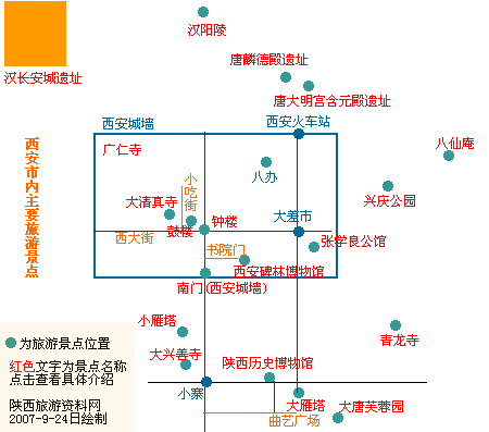 西安市主要旅游景點示意圖